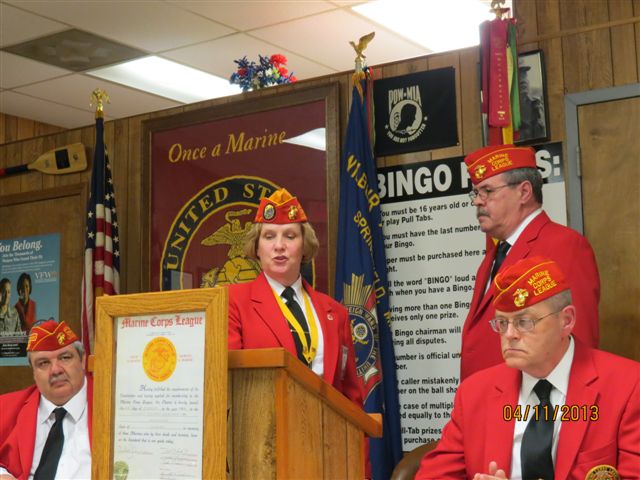 10 INSTALLATION OF OFFICERS The new officers of both MCL Detachment 993 and Ladies Auxiliary Unit 386 are installed in April. March 10, 2018